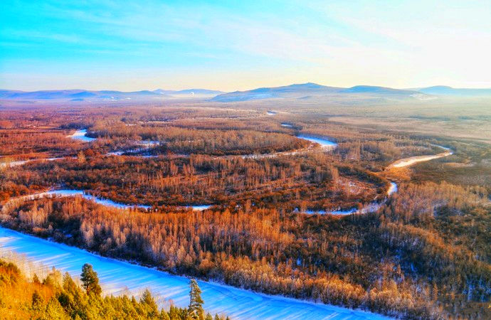 九曲十八彎位于加漠公路485段上,在此觀景臺(tái)上可欣賞九曲彎河在蒼松翠柏映襯下的瑰麗美景。九曲十八彎自然風(fēng)景區(qū)是中國(guó)最北的濕地,又是天然形成的原生態(tài)濕地,在6-9月份的100多天里,景致壯觀。早晨3:00-9:00點(diǎn)登高俯視,云霧繚繞,如臨仙境,心曠神怡。到了冬季,站在觀景臺(tái)上舉目遠(yuǎn)眺,被冰雪覆蓋的額木爾河猶如一條白色巨龍盤繞其間,岸邊冰川潔白如玉、晶瑩剔透,有的像蘑菇、有的像峭壁、有的像溶洞,盡顯北國(guó)之奇、之冷、雪野之壯美,此乃大自然鬼斧神工賜予大興安嶺的奇絕勝景。