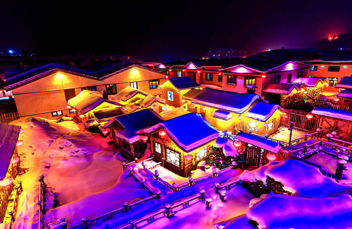 夢(mèng)幻家園是一個(gè)集住宿、餐飲、娛樂、二人轉(zhuǎn)、雪上娛樂與一體的莊園,占據(jù)了雪韻大街的黃金地段,地盤極大,院子里幾乎涵蓋了雪的各種造型,因最初是劇組拍戲留下的,布景比普通農(nóng)家院落更精致些,還有水井、小橋等點(diǎn)睛之筆,能拍出些好照片。沿木棧道爬上半山腰的觀景臺(tái),可以俯拍莊園和雪鄉(xiāng)的全景。